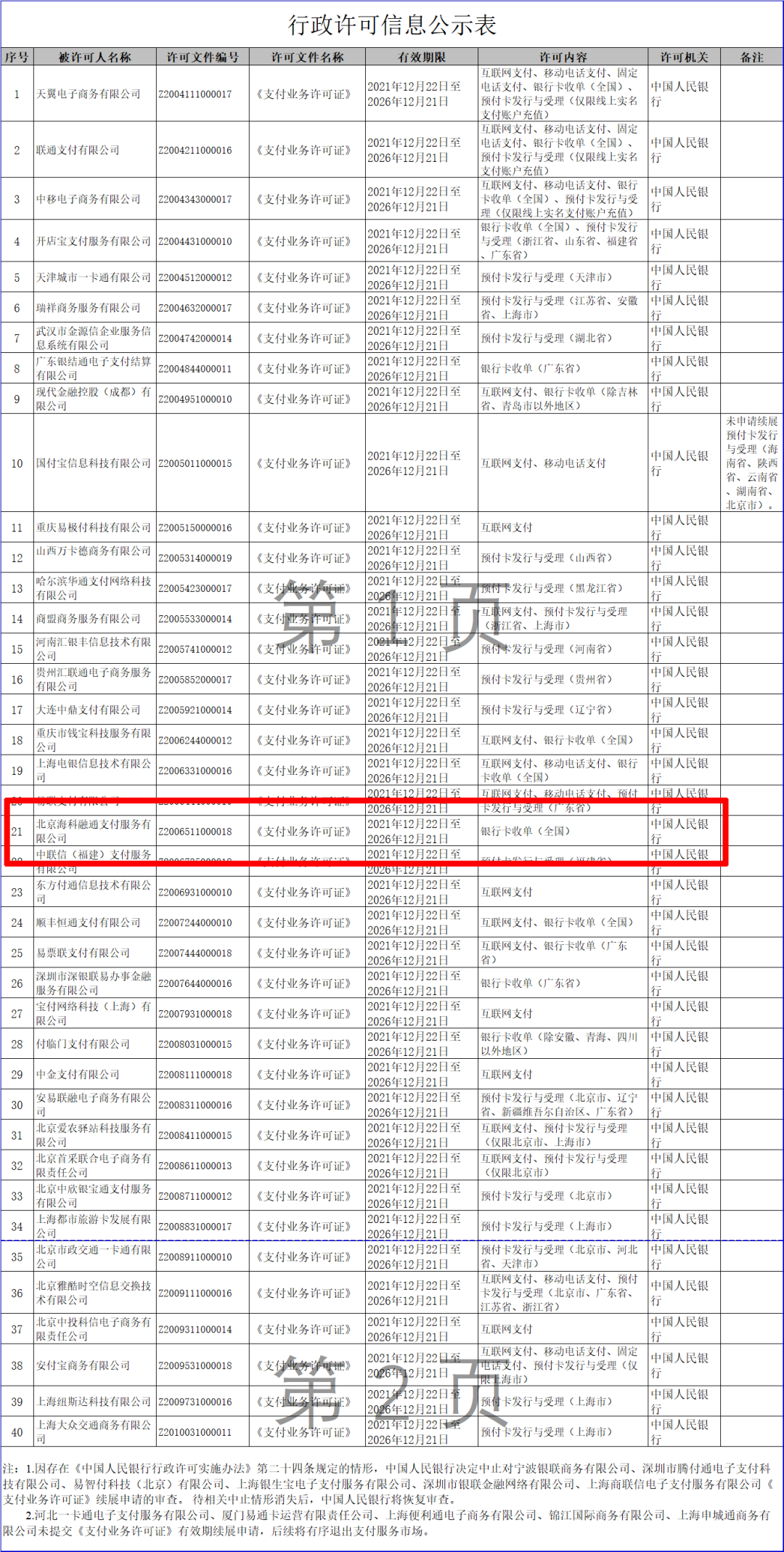 2021年12月22日,中国人民银行发布非银行支付机构《支付业务许可证》续展公示信息(2021年12月第三批),北京海科融通支付服务有限公司顺利完成《支付业务许可证》第二次续展工作。根据公告,海科融通《支付业务许可证》业务类型为银行卡收单,业务范围覆盖全国,此次续展有效期为五年,截止日期为2026年12月21日。